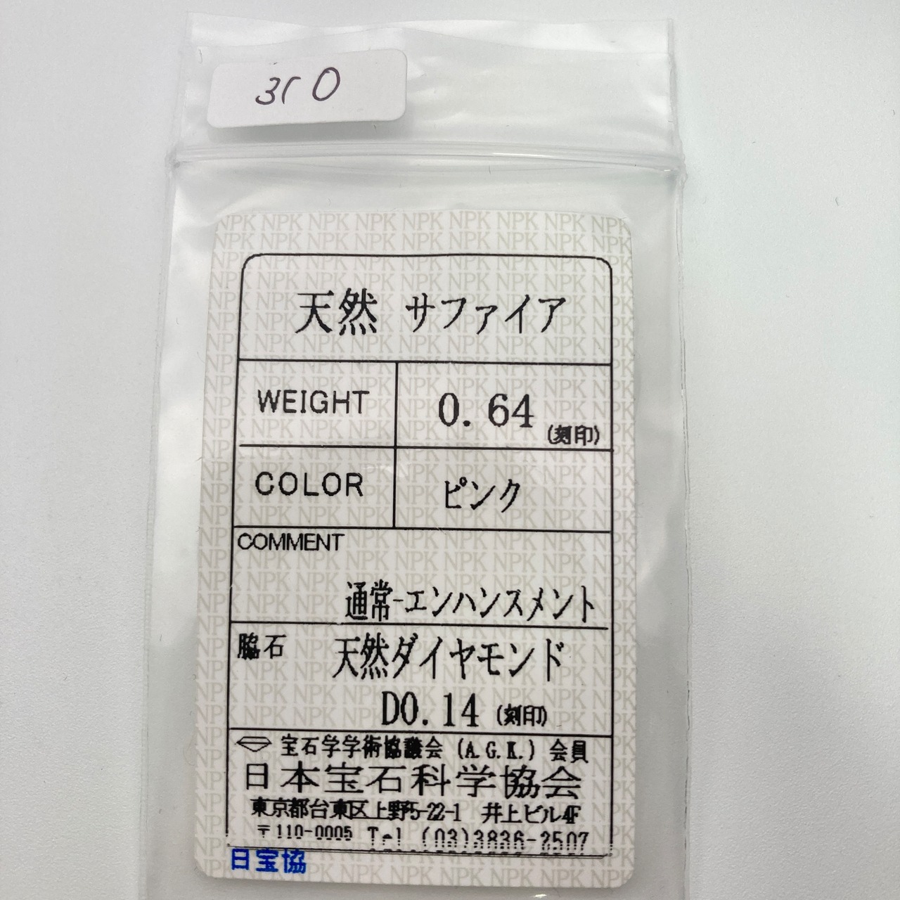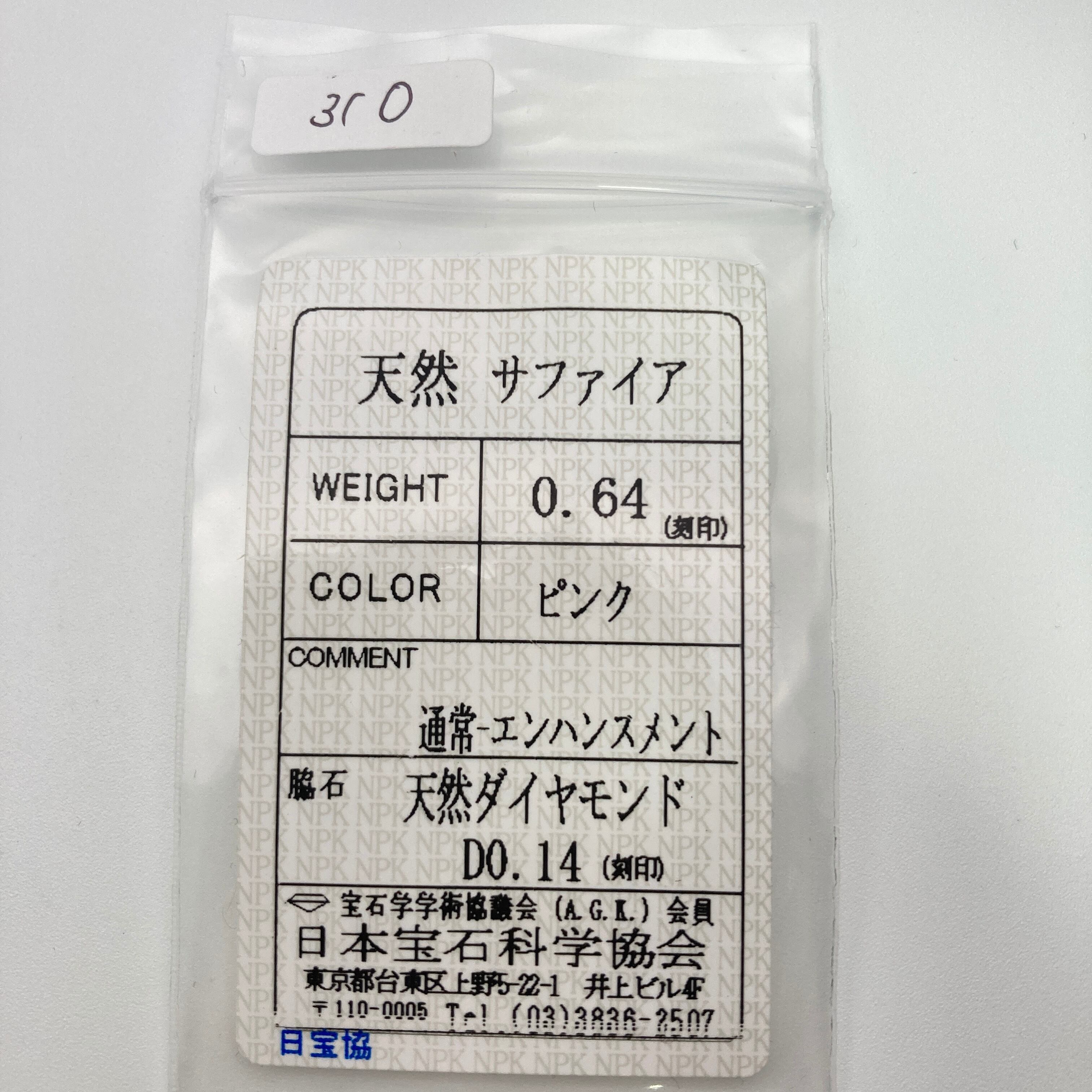 (310)ソ付 ピンクサファイア 0.64ct ダイヤモンド 0.14ct リング