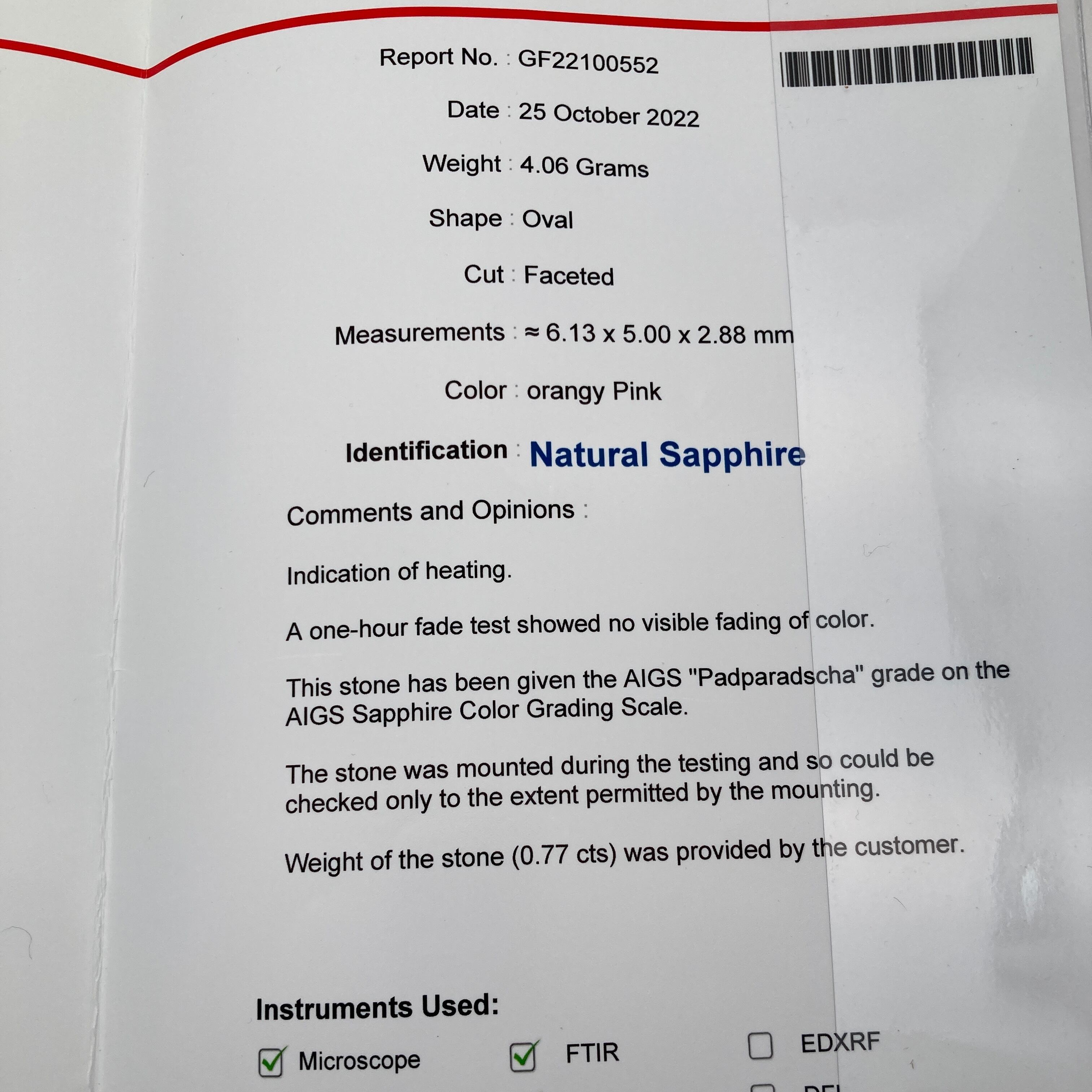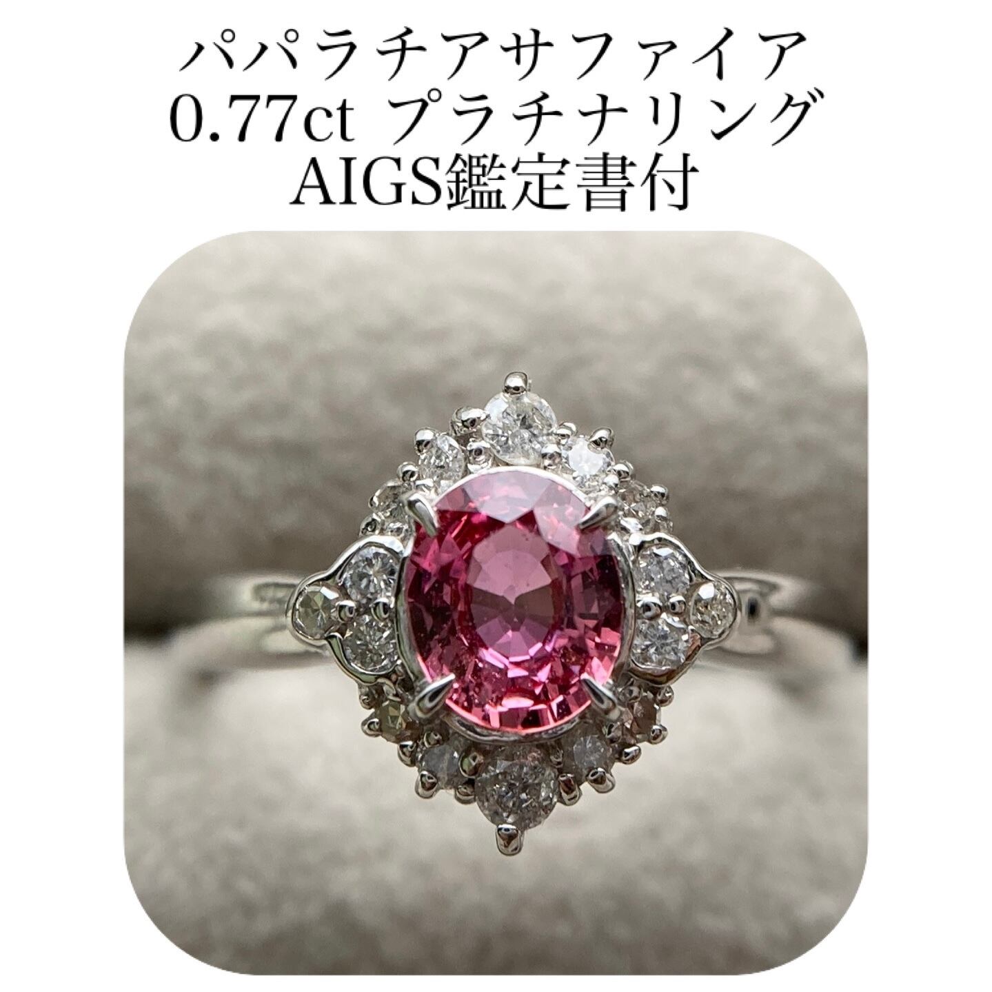 (390)AIGS鑑付 パパラチアサファイア 0.77ct ダイヤモンド 0.24ct プラチナ pt900 リング